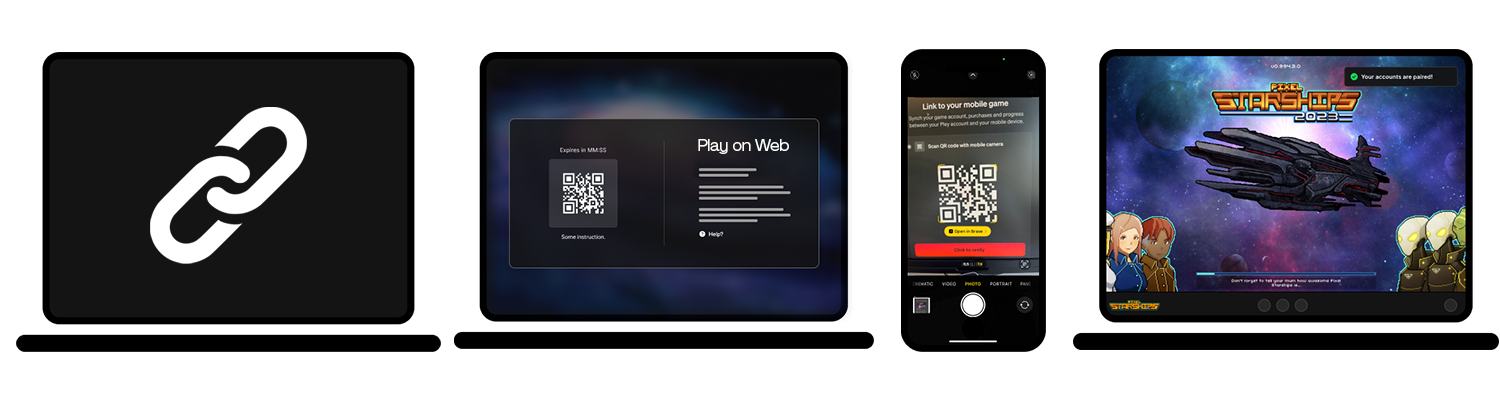 The ability for players to link their progress cross platform. The player plays the game on one platform, and simply scans a single QR code with their phone to permanently connect their mobile progress with their web game. It was decided to prioritize player UX (minimize the frictions and conversion journey), at the cost of game studio implementation.