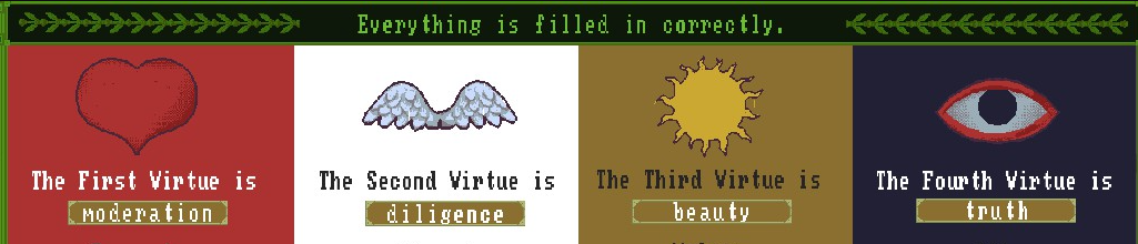 Little nudges that stop you from flailing around. Difficulty ratings, hints, or blurred-out options remind you what’s currently solvable and what isn’t. It is critical for the player to not feel like their effort is wasted. The creepy voice in the back of the players head saying “The mystery you’re spending hours trying to solve? You don’t have the information necessary”. We must indicate to the player what they should spend their time on.
